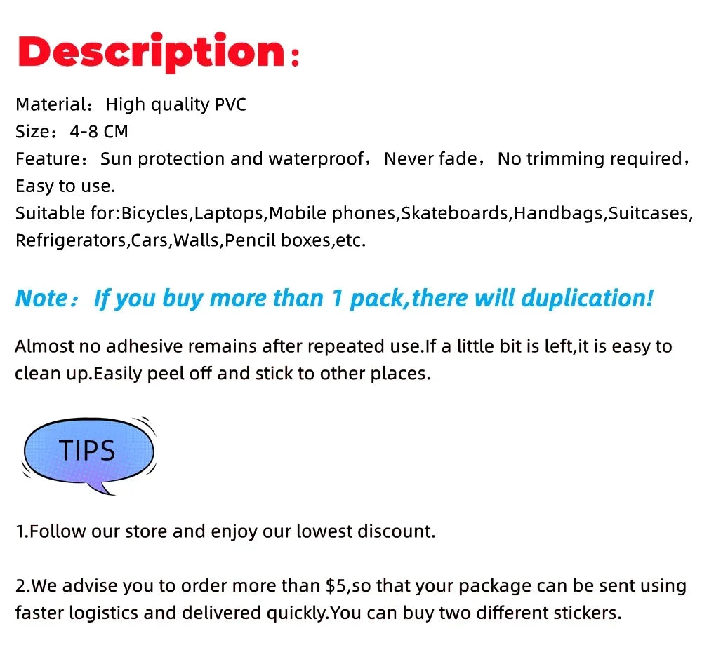 The ultimate sticker pack for anime lovers and collectors. 🌸 100 unique kawaii-style character stickers featuring everyone's favorite creatures — perfect for water bottles, laptops, binders, phone cases, skateboards, and more.